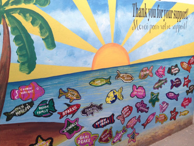 If you donated after Sept 27th, that was past the due date and we'd already left for Haiti. Regrettably we didn't have any internet access the first several days we were there so we were not able to grab those last few fish. However, the mural was so successful and so much fun, we had to spread it to 2 walls and next time we go back, perhaps we'll wrap it around to a third so that more can join in.